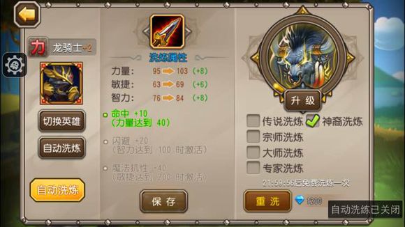 龙骑士的双洗是洗出智力,主要的是那激活属性直接增加20点的闪避,要知道闪避可不是说有就有的,这20点的闪避可以让龙骑士在对抗菜刀队时游刃有余。