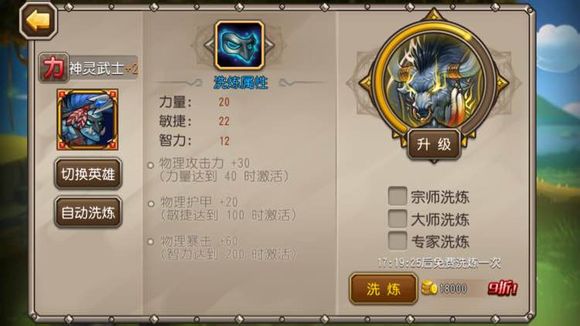 神灵武士三洗是洗出智力,这样神灵武士的魔抗会有所加强,激活后还能提升暴击,来增加神灵武士的输出,也是很好用的。