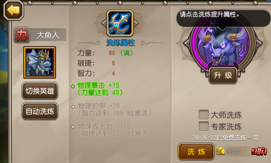 大鱼人三洗是洗出敏捷,敏捷可以提升大鱼人的护甲,激活属性增加物理攻击力+120也是没什么意义。