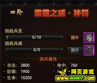 当你把骑战兵器升级到五阶时就可以激活你的骑战兵魂,喂养过后,就可以提升相应的属性。