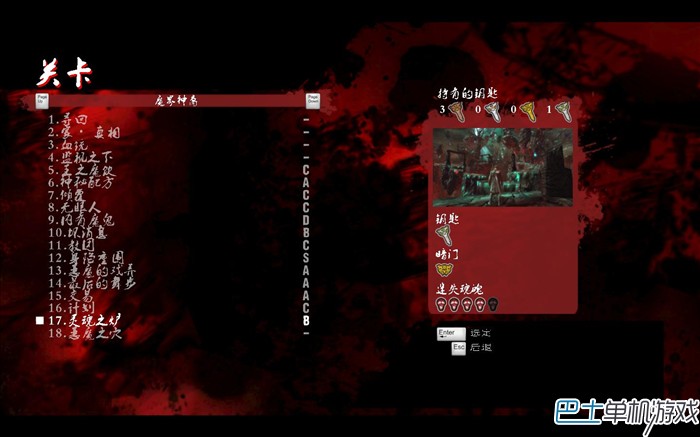 收集物品:一把金钥匙,两个暗门。九个迷失魂魄。