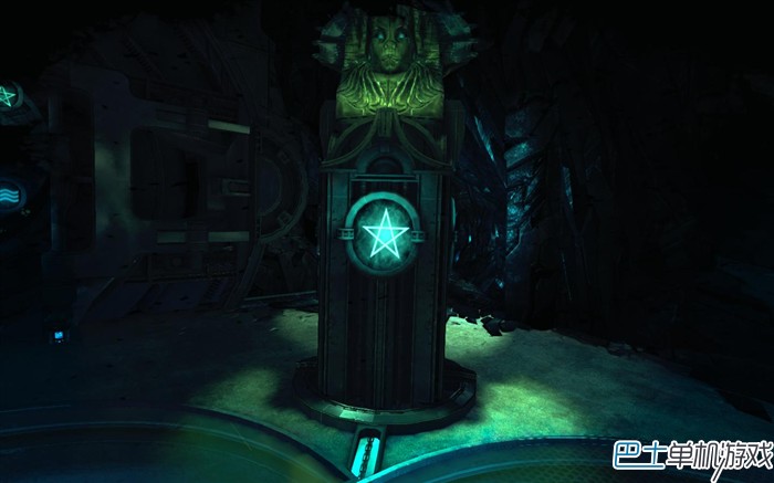 你在每个通道的尽头就能看到如上图这样的机关。地上红色的是这个机关代表的图腾,上图这个就是星星。共有星星、月亮、太阳、风四个图腾。你使用魔蛇鞭 就可以拽动上面的那个圆环转动,有的圆环你必须跑到它的背面才能看到拖拽点。拽动后,就会看到大厅里的那个石柱出现了,如下图。