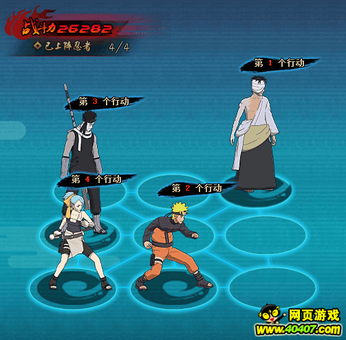 第四回合。二三四代中有一人死(正常应该是4代死,二三代残血),其余两人残血,水主大鲛蛋三代(能混乱到二代最好,没混乱也没事),再不斩被二三代中其中一人敲死,团藏吃一击残血,团藏奥义给自己。此波团藏需抗一次初代普攻,没有结界不出暴击是死不了人的,有伊邪。