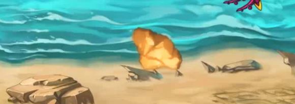 ②飞沙走石:挥舞钢叉,击飞脚下的石头快速飞向玩家。这技能来得很快,要学会预判,然后跳跃。