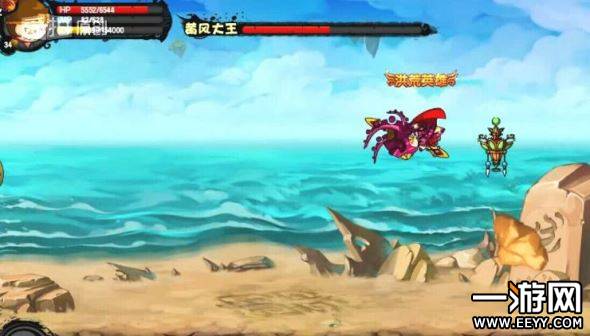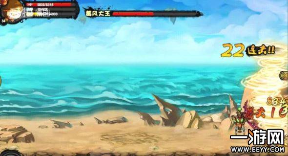 这是前面释放完三次火魔斩,再叠加几次普工的效果,可以清楚的看到,boss一半血已经消失,这时,boss使用技能飞走了,前面也说过,boss飞走到另一端,一定会使用石头来打你。这时候要躲:看吧,boss释放石头了,会释放两次,记得都躲,然后就可以过去进攻了(可能会受到旋风攻击)