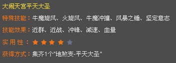 平天大圣是一个性价比很高的变身装备,只需要50枚玉石就能换到,可以说在地煞中的入手难度算是中等吧,只要大家再好好努力一下下就应该可以得到他了。平天大圣的生存能力和控制能力都非常顽强哦,这里就为大家介绍一下平天大圣的装备属性。