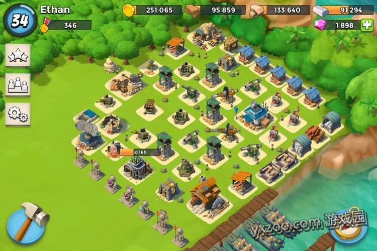 因为我是偏攻击的,防御等级很低,从图上也可以看出像狙击塔甚至有几个绿帽子都还没有,对于像胖子妹妹或者坦克医生这样的组合防御能力偏弱,但是因为没有太多可以偷的建筑,对方获得能量不会很多,还是可以对敌方完成不小杀伤,即使防不住宝石还是能拿几颗。