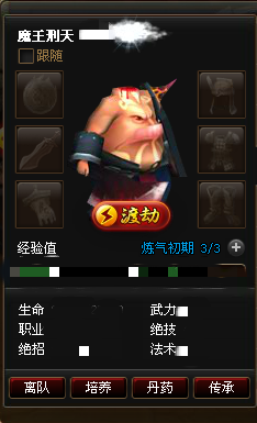 那么小伙伴们要怎么才能安全渡劫呢?小编为您揭秘~最基本的,你的铜钱要多哦,如果团队中大家都一起猎命或者培养的话,钱还是很容易搞到手的,一般还真不太缺,在后期一天上千万可以说也不是啥困难的事。第二点,玩家召集三位还未传承伙伴,第一位注重培养他的武力,然后另一个以为培养绝技为重,最后的一个小伙伴就使劲的培养他的法力,接下来只差一步就大功告成!玩家把所有培养出来的渡劫点都加在其中的一位身上。小编认为,巨灵神单最好了,可以作为单一属性培养永久保持着。