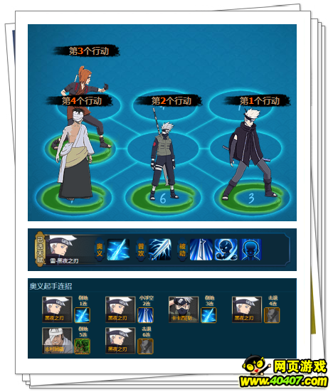 第二回合:雷主看情况卡好技能奥义敌方小队,对一名忍者造成麻痹、定身效果,对面基本就有一两个忍者残血了。