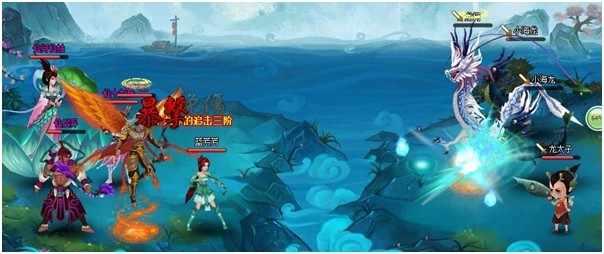 第五关玩家需要对战BOSS东海敖广,并且坑爹的是,你不能误杀对面的npc。小编建议让 仙姑上飞仙带回春。其他人绝技不变。