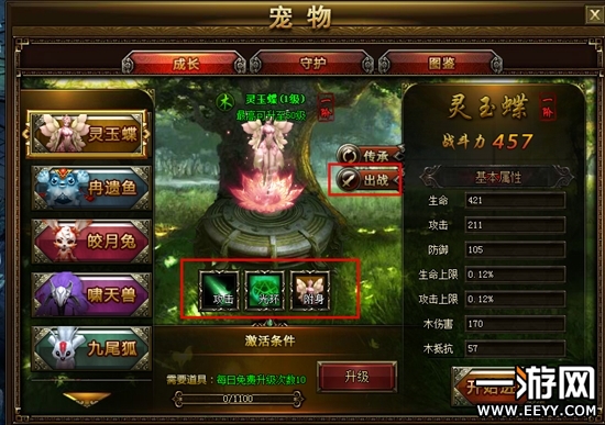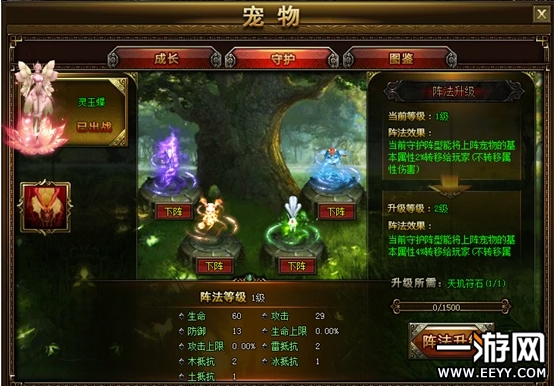 在玩家们成功激活了宠物系统,得到了自己心爱的宠物之后,在出战时可以携带一个宠物随从出战。如果你是一位拥有众多宠物伙伴的玩家,还可以利用宠物阵法让已激活但未出战的宠物有机会为主人发挥效用,成为玩家们背后的守护英雄。玩家们在宠物界面选择相应页签,将未出战的宠物放置到守护阵型相应的位置上,这样它们就可以将自己的部分属性转移给主人,为玩家所用了。不过需要知道的四守护阵法最多只可以放入四个未出战宠物哦,玩家的等级越高,那么宠物能够转移给玩家的属性也就越高,在战斗中,它们可是你得力的小助手!快让它们大显身手,用超高战斗力为你增添无穷助力。快带领着你心爱的小宠物一起行走西游吧~