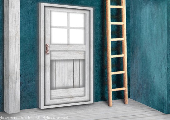 3.点击梯子上去在窗户上拿到一把钥匙,下来左转在门上使用钥匙打开门