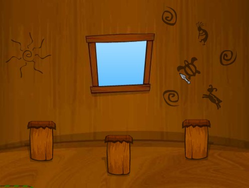 6.向前由转,获得黄色草堆,左转在木柱上用锤子弄出刚才所看图案,获得黑色钥匙