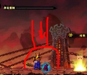 当它发完第二个烈焰重拳时,要保证你人物要在右边墙角,如果你的人物不在右边墙角的话,boos发火墙就会发到你的位置,这样可移动位置就少了很多,所以我们要保证它的第一个火墙在右边墙角。如果不在右边墙角,就如下图这样了。