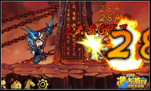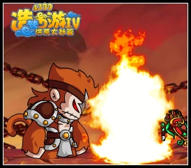 3、1和2的打法都打了一次后,boos的血量也快到一半了,但也别着急,我们就跑到右边墙角,但和之前不一样,boos来得差不多的时候,普通攻 击打几下,把它打在那里,之后它发烈焰重拳时,这次就不用跑了,二段跳就行了,但要小心,因为它要发怒破山炎了,当它飞到空中的时候,我们就马上往右边跑 一点距离,之后不用和它客气,无双加水魔爆打,这样大概boos就死了,如果还没死,就开坐骑补招。
