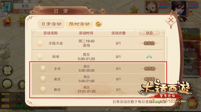 排名前50的玩家,可以获得科举称谓,一不小心“状元、榜眼、探花或进士”就成为你的囊中之物啦!另外还有随机的物品和经验值奖励等着你噢!