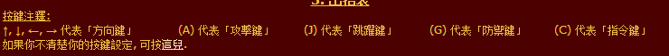 方向键可以控制方向,AJGC代表了攻击、跳跃、防守和指令。