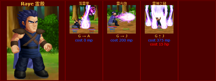 三巨头之一的雷殷有着强健的体魄三个技能凸显了名字中的雷,最终的大技能相当强悍,但是消耗也多,终极无敌版中无此消耗,因为人物是无敌的。