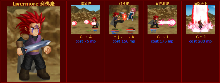 利佛魔无疑是本次版本中最为强悍的角色,在终极无敌版中利佛魔的出现绝对是逆天的,他的追踪波不同于正面人物的气功波,带有追踪功能只是其中的一个小优势,更加BUG的是在Orz的版本中追踪波是无限发射的,满屏幕的追踪波会让你找不到敌人的影子。