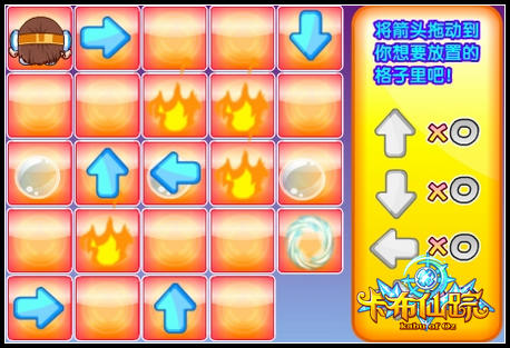 首先第一步,玩家们需要拖动箭头,到玩家想要的位置,然后,你就会发现,途中的小小卡布只会一直走直线,笨笨的它需要你的帮助哦,因为它是不会自己拐弯的,这时候就需要我们的玩家来防止箭头啦,因为放置箭头就是指引小卡布拐弯的。