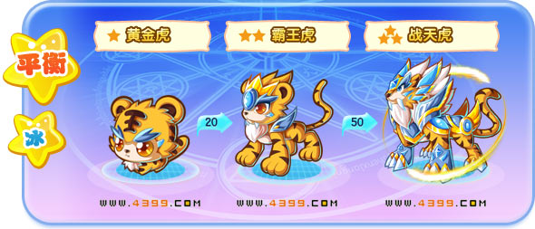 最后是卡布仙踪战天虎的属性——属性:冰系,特长:平衡。得到卡布仙踪战天虎后,很多玩家都很想知道卡布仙踪战天虎的升级和强化路线吧,小编告诉你天空巡逻+打塔+活动+任务+公会任务+果子+打灵兽=神速升级。洗天赋+活动+猎魂=神速强化。