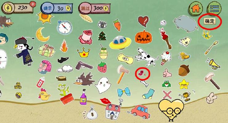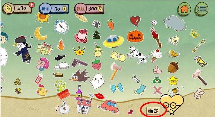 2.4样东西找到后,再找到右上角的确定按钮。最后就能找到妹子啦!!