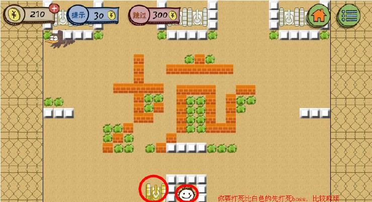 开局不要犹豫!直接将枪头对准自己老巢!不断开炮,打穿老巢护甲后,直接干掉BOSS,就能顺利过关!