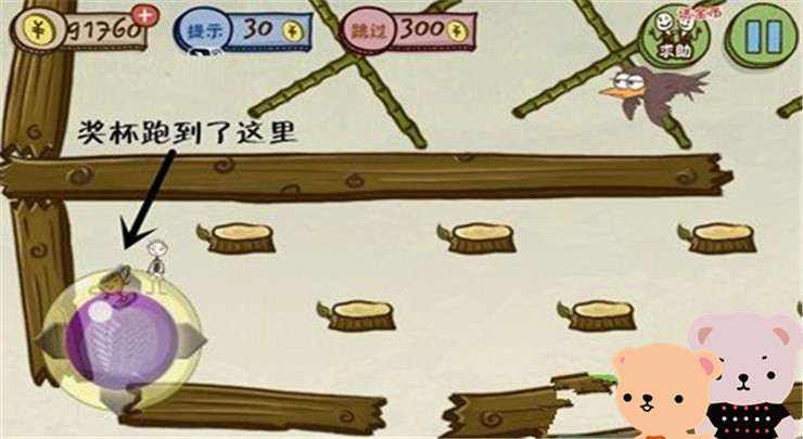 史上最坑爹的游戏3第14关攻略:靠近奖杯时奖杯会跑到出发点,回去就行了(建议凑