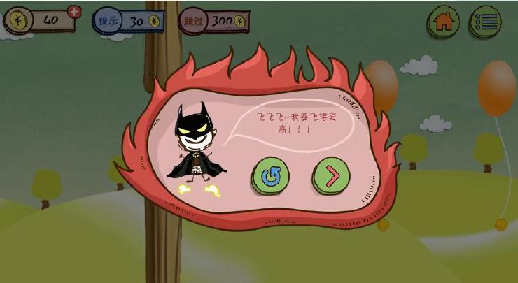 2.飞过15根柱子后就会看到绑着金币的气球,一看到气球大家需要马上狂点屏幕,使小人一直向上直到飞出屏幕,就可以成功过关啦。