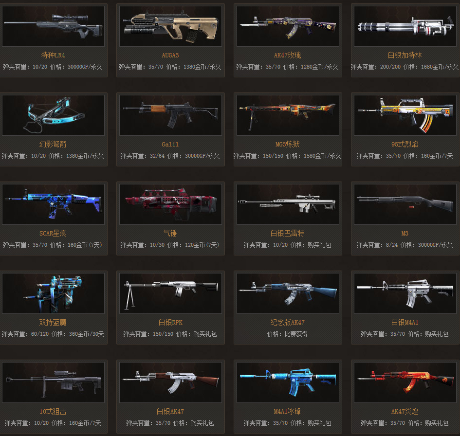 生死狙击中没有一把好的顺手的武器将无法立足于高手之中。所以我们在这里将列出所有的武器为玩家参考。