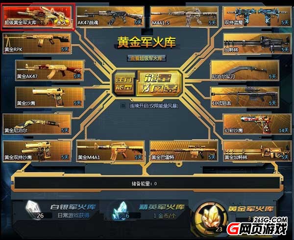 第二种方法就是通过能量的累计储备,只要储备能量值达到满值后,玩家就能够拥有一次免费进入超级XX军火库的机会。军火库抽奖的技巧就在于此,进入超级XX军火库才能拥有更多更好的奖赏机会。已经告诉了大家如何进入的方法了,玩家们还在等什么,快朝着超级军火库开启永久枪械的寻找之旅吧!