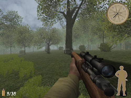 大雾笼罩着整个战场,敌军的防备非常松懈,我轻松地干掉了两个人。在前面的木箱旁收起M1A1看看四周,乡间大道上有几个敌人,一一解决掉。向左走,前方有辆装甲车,敌人已经意识到我的存在,我只能将他们击毙。右前方有个仓库,在仓库外救护兵正给一个伤员包扎。远处山坡上有个狙击手正瞄准我们。消灭他的枪声引来了更多的德国人,战斗瞬间打响,我们以少胜多,来到了小镇上。敌人的机动部队被我军的火力压制,一部分步兵藏身在小镇北边,虽然敌人的作战能力很弱,但我和战友还是觉得这场小规模的巷战打得有滋有味。