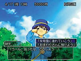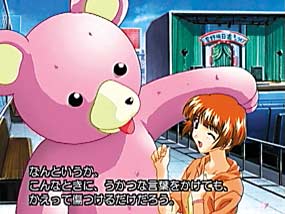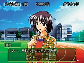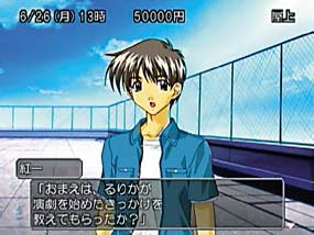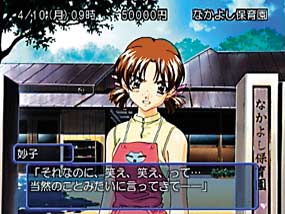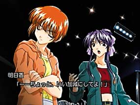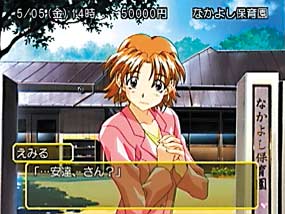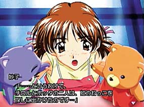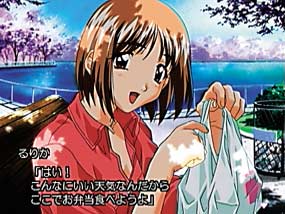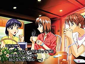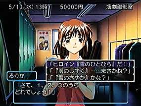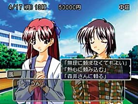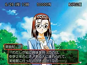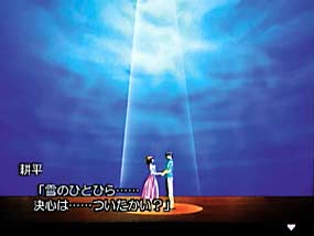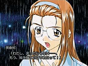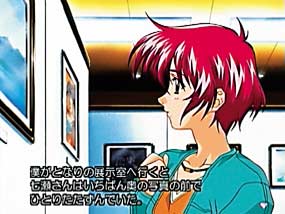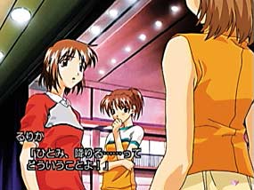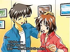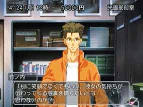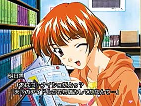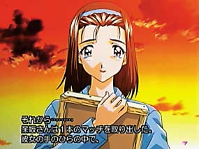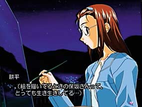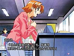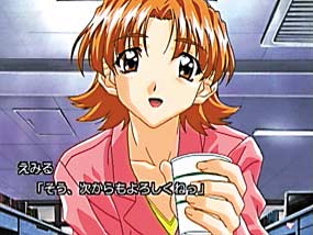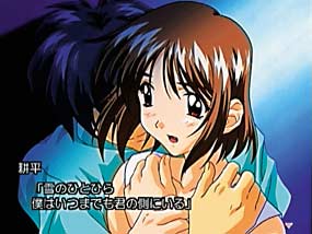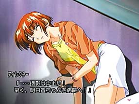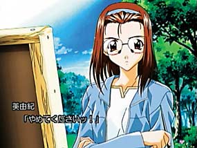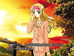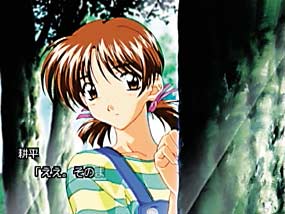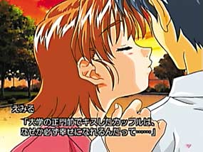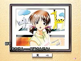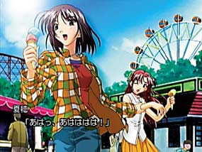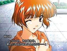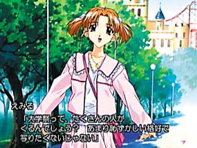 | 从此以后- 今天爱美琉突然打电话给我说要去工作,於是我便立即去找她。想不到她竟然把我带到大学去,还说要报导的是「大学之七不思议」。天呀!我的大学哪有这些东西呢?接着她轻轻在我耳边低诉「第一件,在大学的正门接吻,一定可以得到永远的幸福…」这小妮子!其实,即使我们不在门口接吻,我也会给你幸福的,因为我想永远看到你的笑容呀,我最亲爱的公主。 小评语 爱美琉好可爱呀!她作小孩子的装扮时,简直跟上集完全没有分别嘛!起初本以为她成熟了不少,不过边玩,就边发现她的性格丝毫没变,一样是天真、活泼、爱撒娇。不过没关系,这样才可爱的嘛,虽然感觉上有点像照顾女儿…另外,我觉得她是所有人之中,对上集男主角最没感觉的人,只有那封信略为提及过而已… |