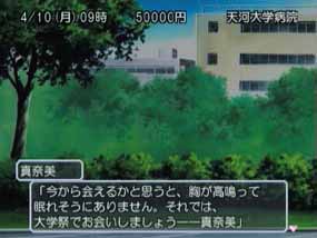 | 给真奈美的信1 | 4/26后 | 9:00~16:00 | 「大学病院」的「休息室」 |