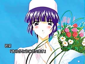 | 爱你避你- 可是自从我称赞真奈美的笑容后,她竟然开始逃避我!而且,她更为了逃避我而由楼梯跌下来,难道她讨厌我了?原来真奈美觉得很害怕,她发现自己慢慢爱上我,又怕我会突然之间消失不见,这个小笨蛋!我向她承诺会永远陪在她身边,并说会带她出去游玩。真奈美听到后立即像小孩子般高兴,并约定游玩的时间。带了她到郊游地点后,我跟她闲谈着,此时她问我为什麽还称她为杉原小姐,「你应该叫我做真奈美嘛」,真可爱!看着她快乐地跟小鸟游玩,我也作出会笑微笑,但到离去时我发现她有点发烧,不过没甚大碍。 从此以后- 看着静静躺在床上的她,双颊染着微红还微笑着,她要我向她保证,在她出院的时候要来接她啊。终於到出院的日子,由医院步出的真奈美脸上有着担忧,这小丫头,现在还不信任我吗?看到我站在远处,真奈美快乐地跑了过来,眼角带着泪光地扑进我的怀里,我相信,我跟她一定会得到幸福的。 小评语 其实真奈美算是一个颇容易攻略的角色,因为她的活动范围只有医院,不需要四处寻找,亦不需要先认识其他女角才能发生其事件。而且其性格很好,不会看到你就避,虽然常常露出不太快乐的表情。只不过各位千万要记得这是游戏,别太为真奈美心痛啊!因为她实在是一个不太懂爱惜自己的女孩,不但为了逃避主角而跌倒,玩的时候生病又不说出来,独自辛苦。不过亦正因为这样,才显得她可爱,让人想保护她嘛! |
