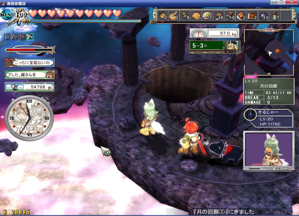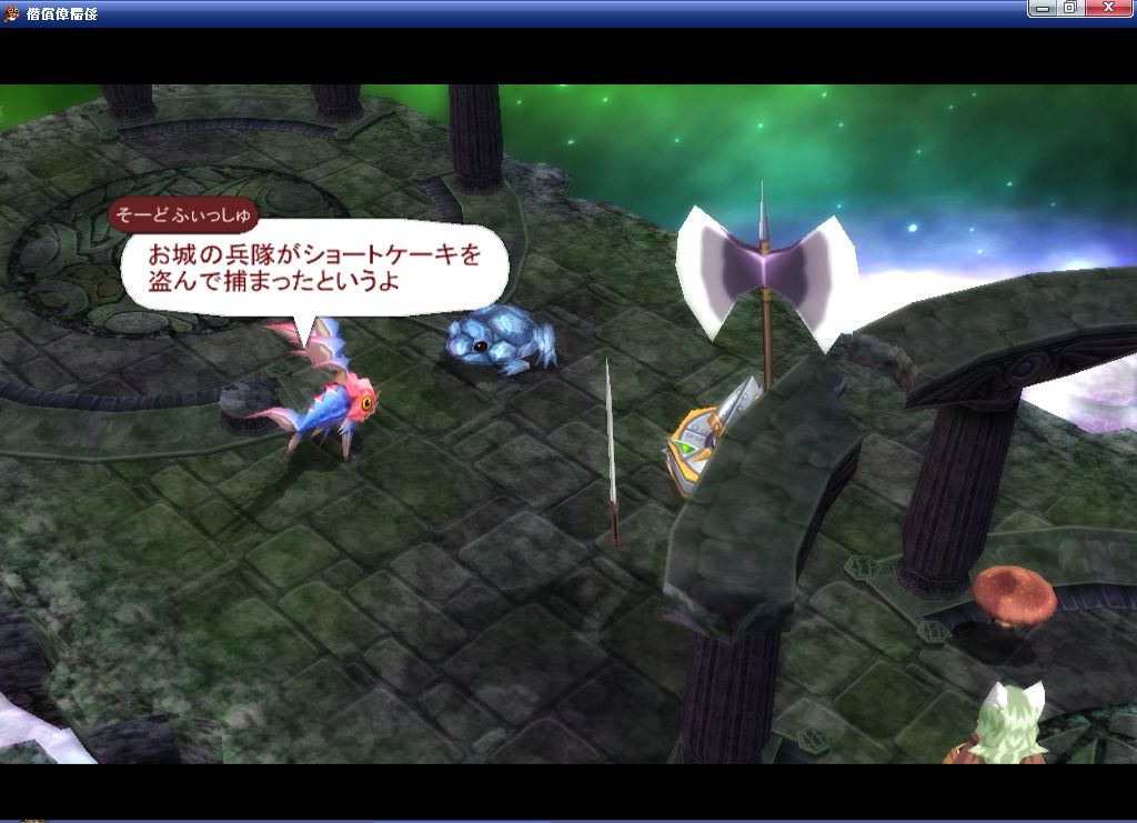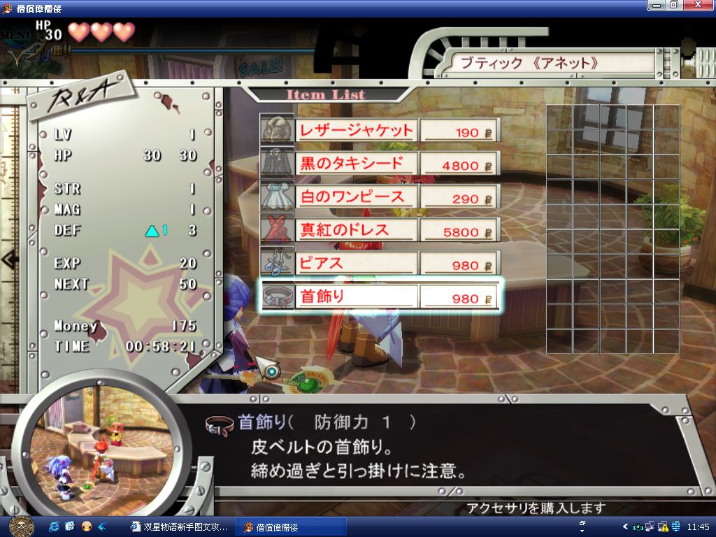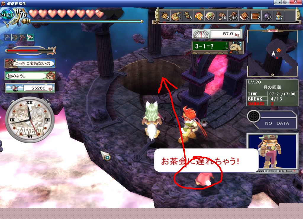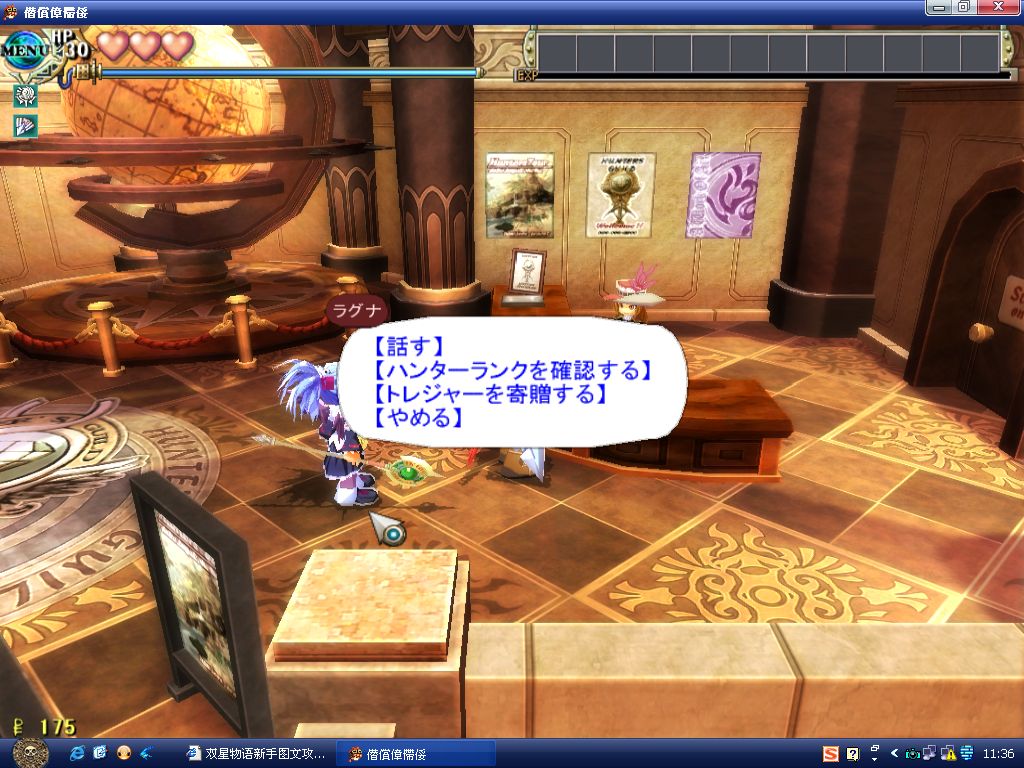 到此上半段交换结束...红毛可以去联系那三位女士开通往月世界的门了...(-.-)鄙人一开始并不知道交换还分上下篇...在入手"猫じゃらし"后一顿好找...试遍全部NPC也没试到交换的人最后只得放弃...进了月世界...