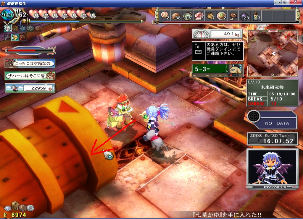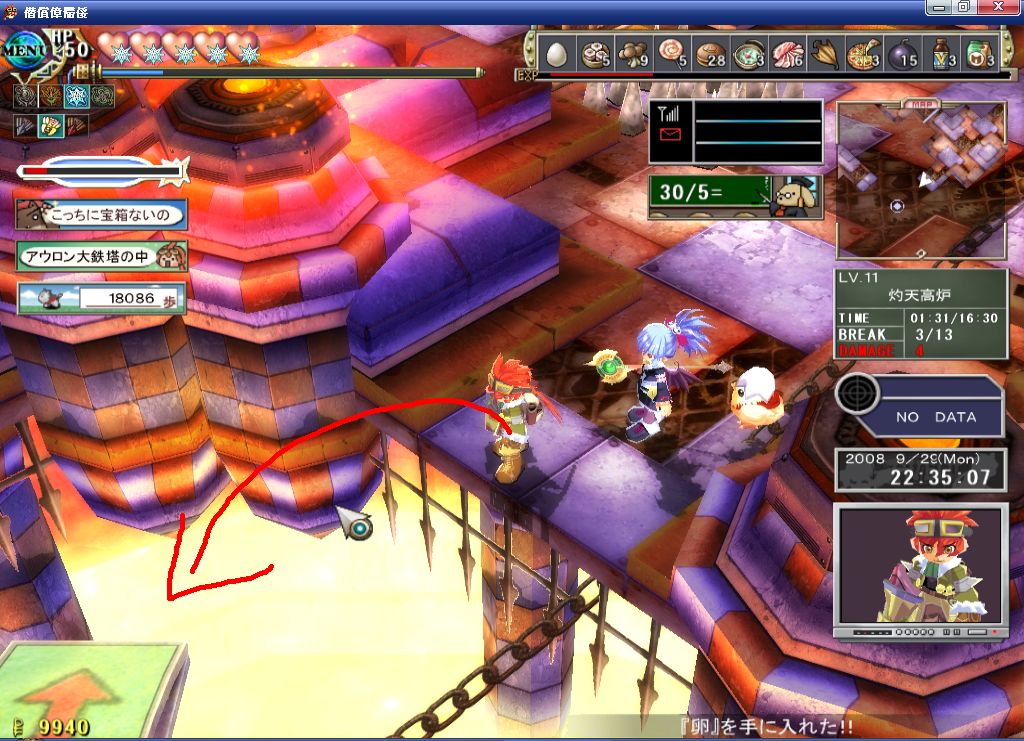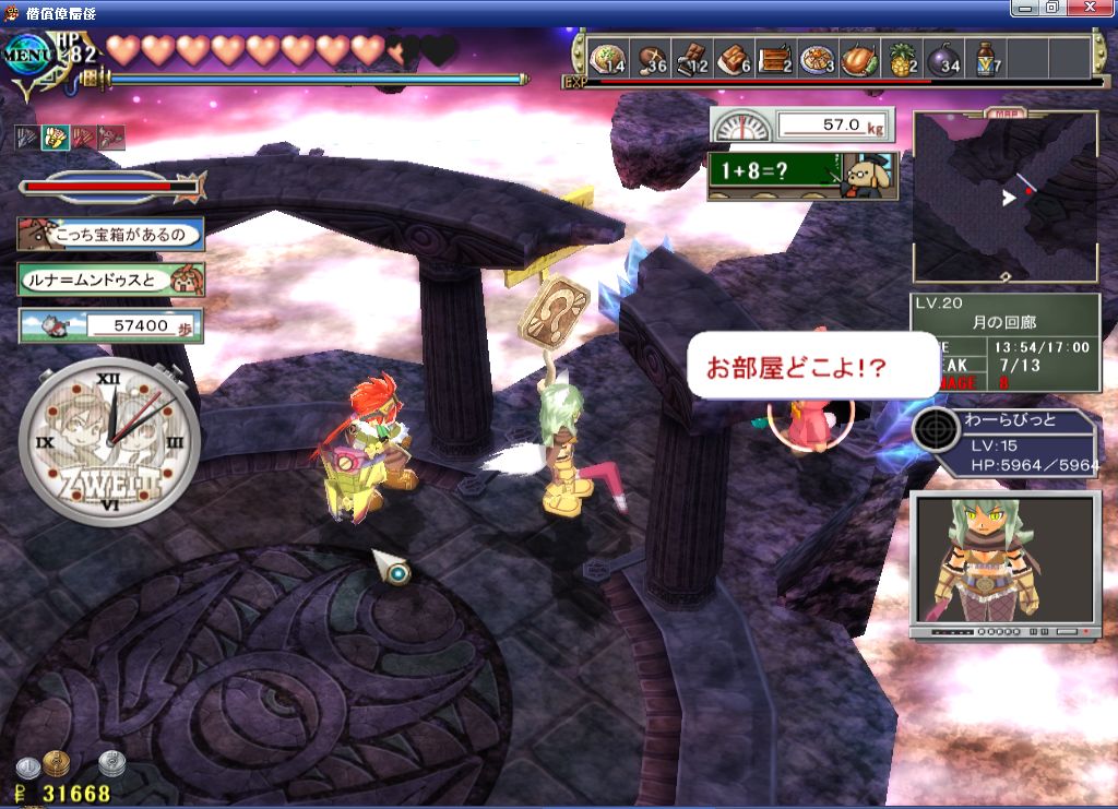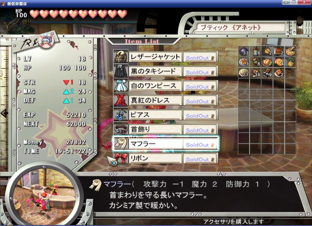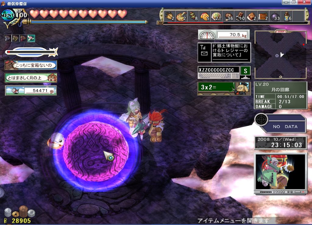 到此上半段交换结束...红毛可以去联系那三位女士开通往月世界的门了...(-.-)鄙人一开始并不知道交换还分上下篇...在入手"猫じゃらし"后一顿好找...试遍全部NPC也没试到交换的人最后只得放弃...进了月世界...