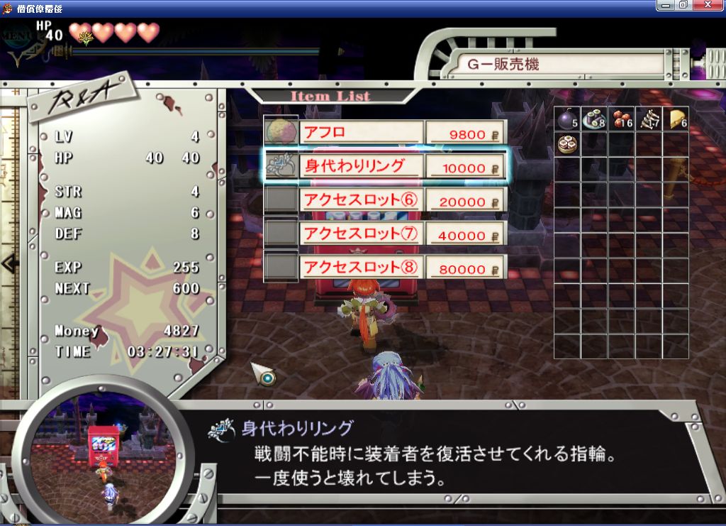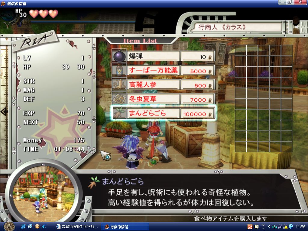另外这个人是卖药的,不过不是回血的,他卖的都是不加血但是经验很高的东东,钱多得没地花的人可以来这里花钱。
