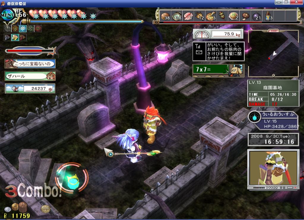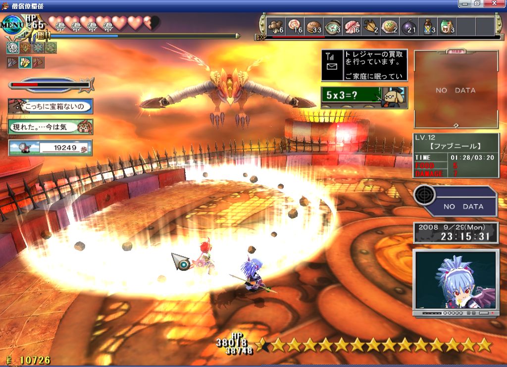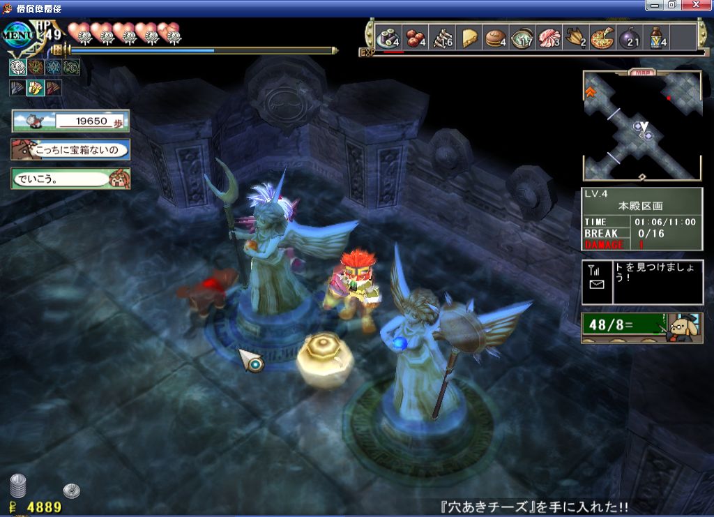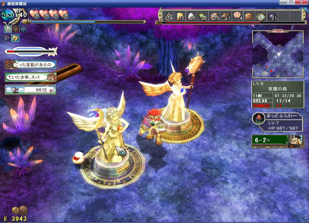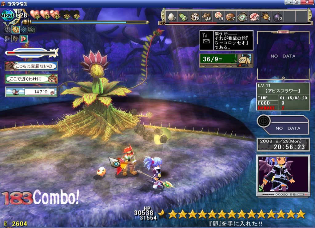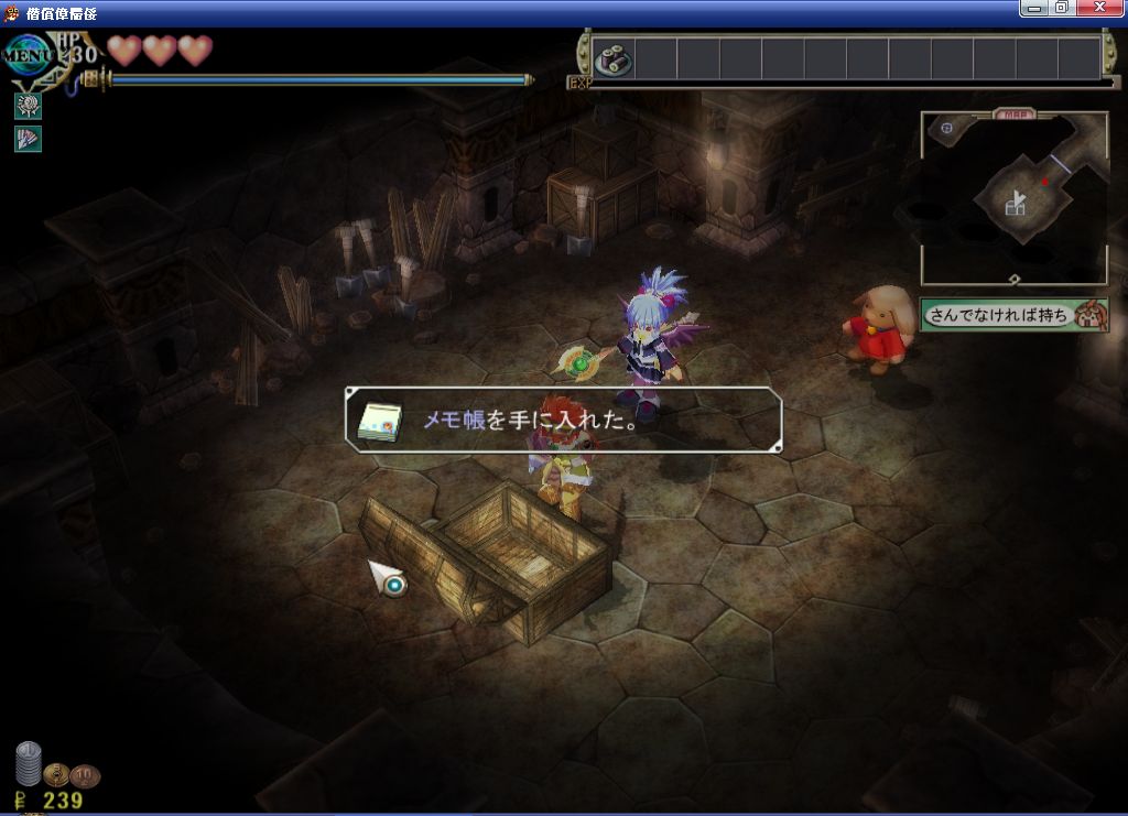 挑战BOSS成功后,会得到食物,饰品栏的东西或是系统机能,还用被击败者的雕像,调查他们可以听到配音。(还有说FALCOM的。。。)