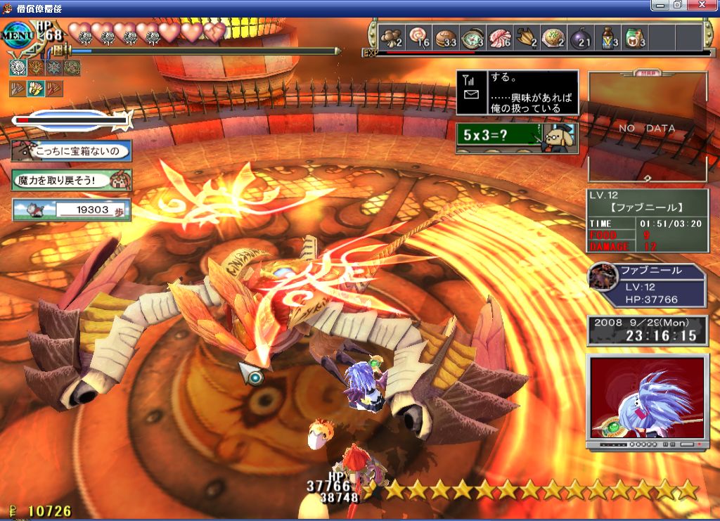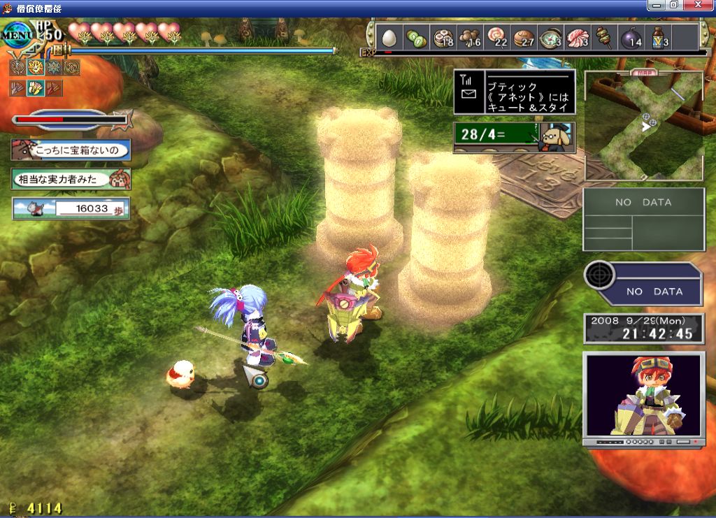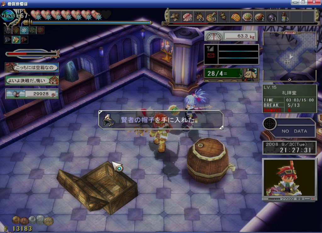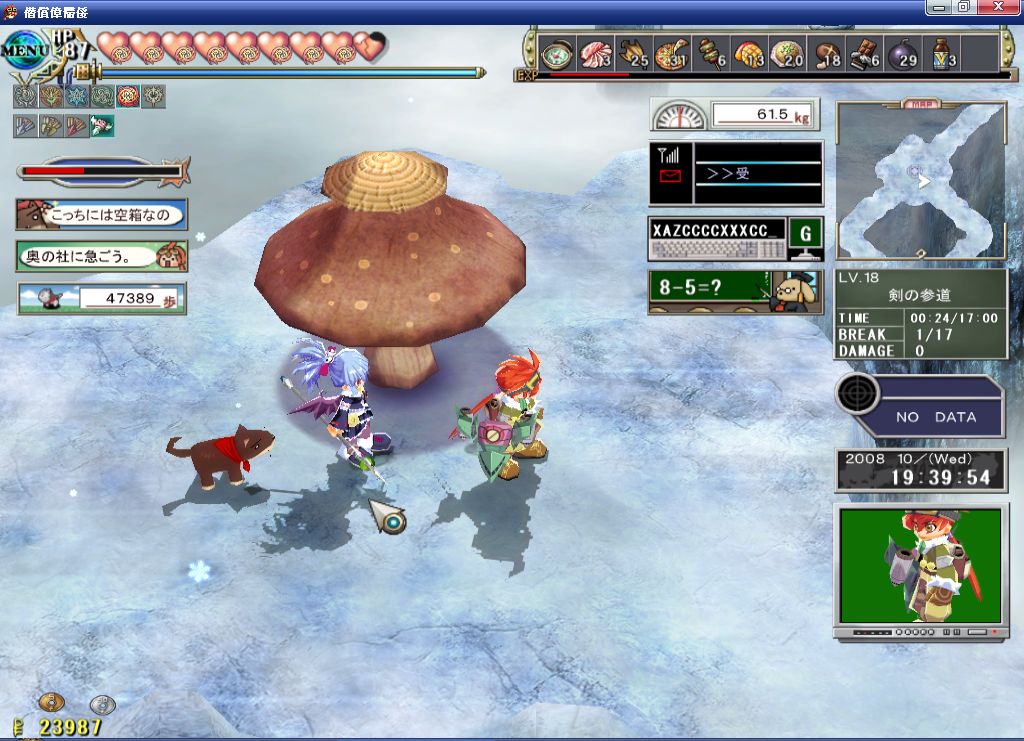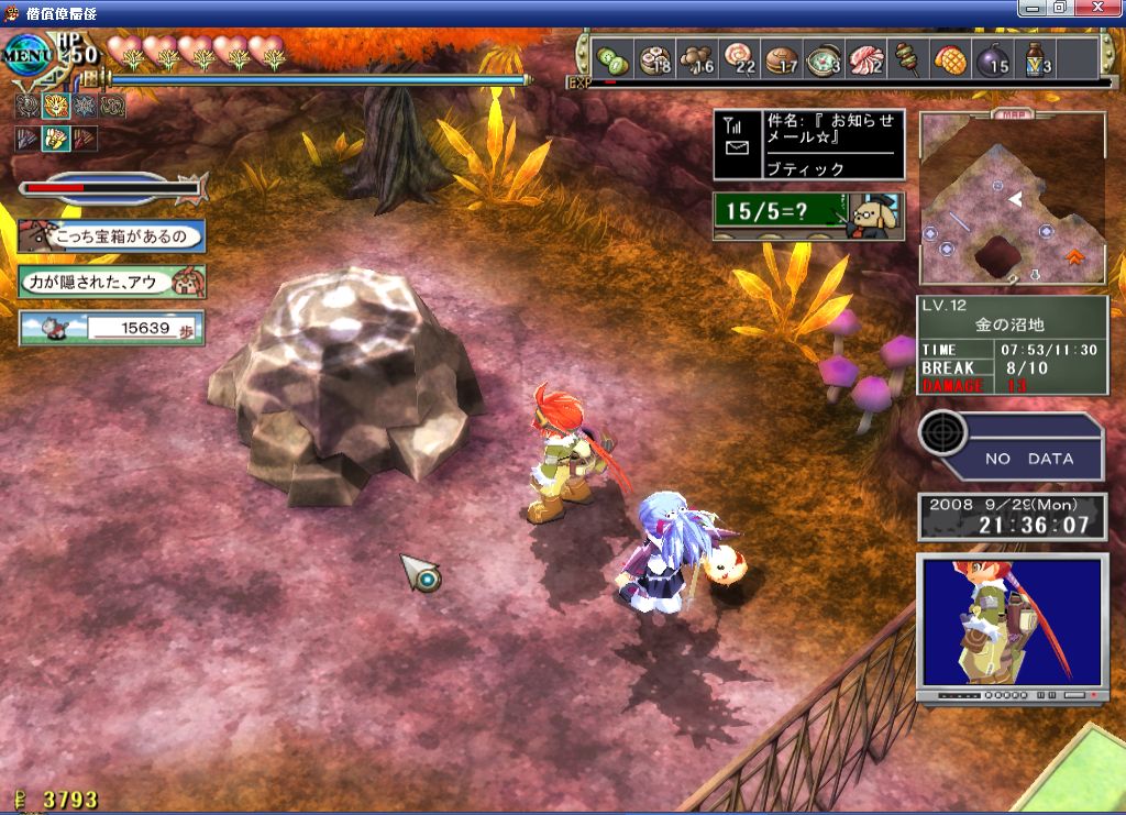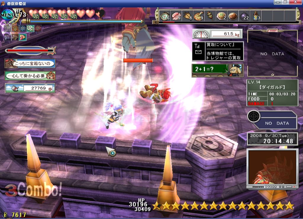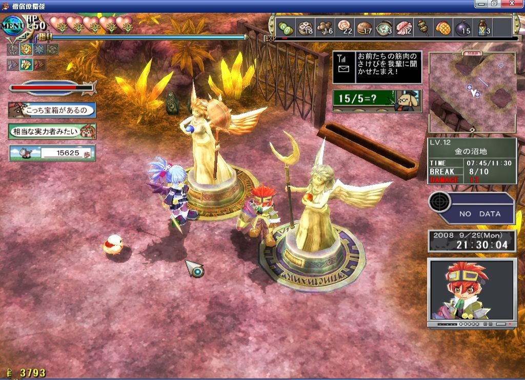 挑战BOSS成功后,会得到食物,饰品栏的东西或是系统机能,还用被击败者的雕像,调查他们可以听到配音。(还有说FALCOM的。。。)