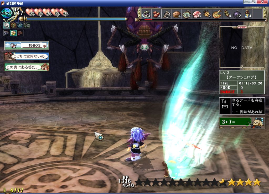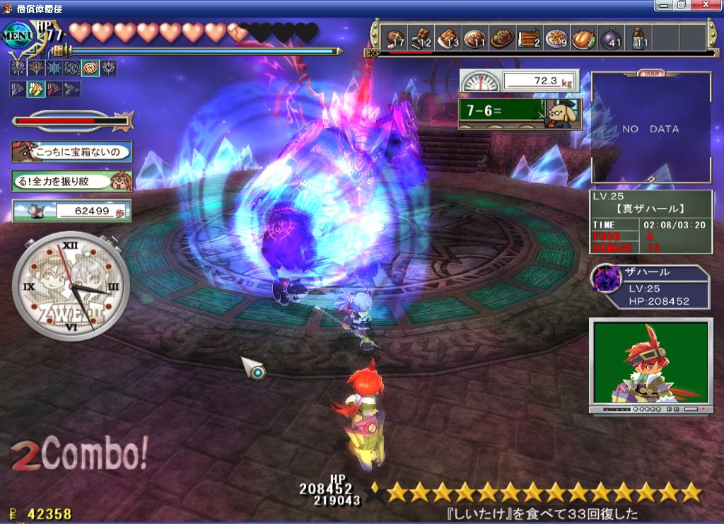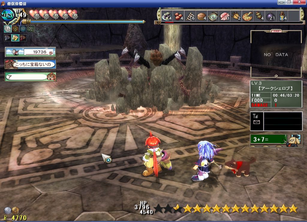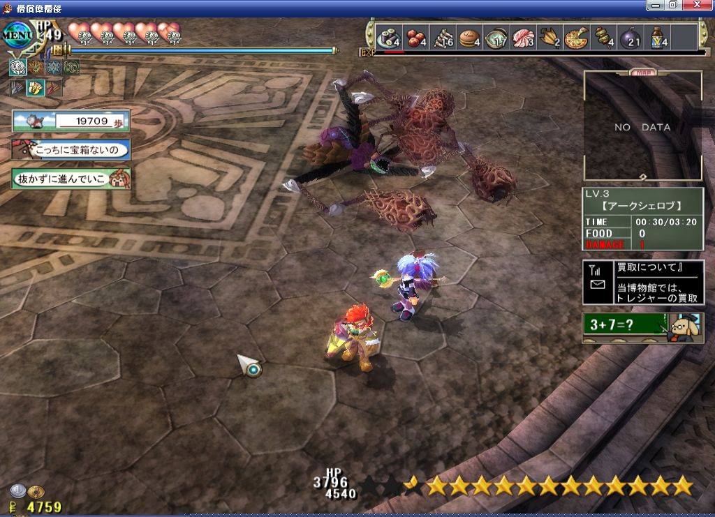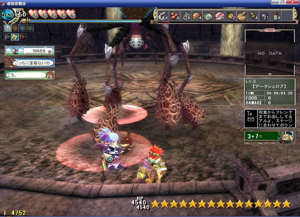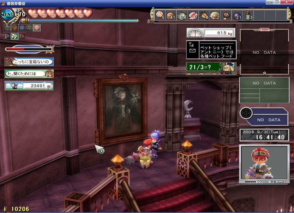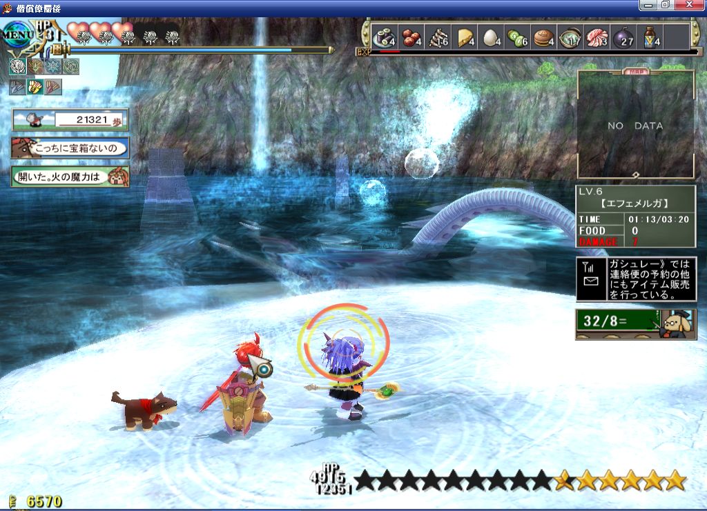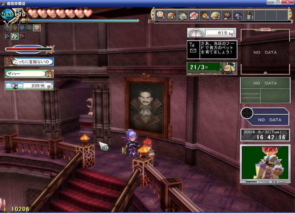 酒店里可以找大厨换食物,10个低级食物换一个高级食物,虽然10个低级食物的血比一个高级食物的多,但是经验值是比不上的,由于游戏升级是靠吃食物的,所以以后这里肯定是常来之处。不过不要全换完了,不然你打迷宫就没得吃了。