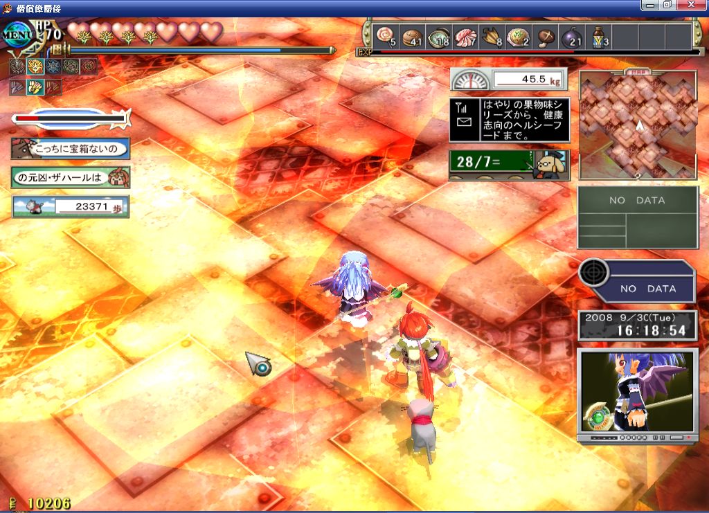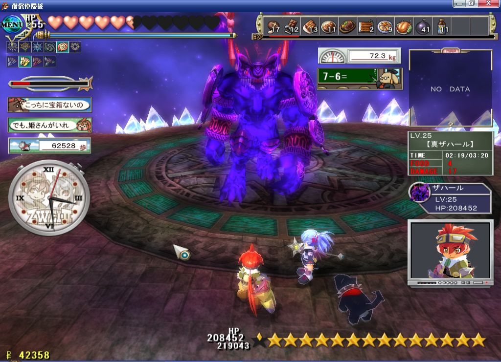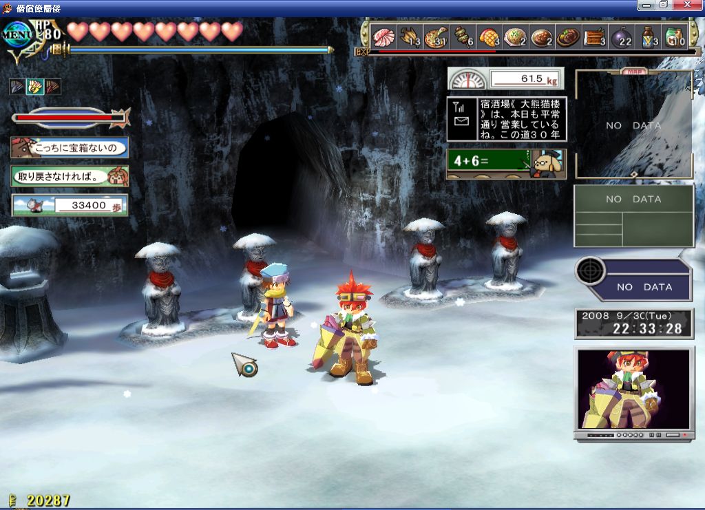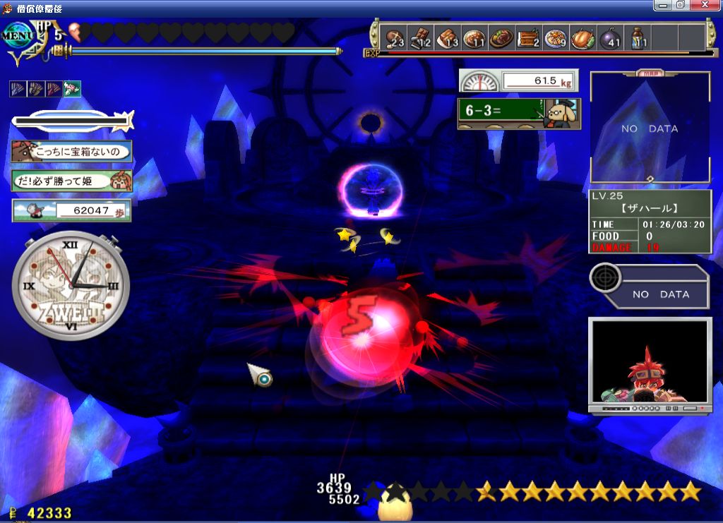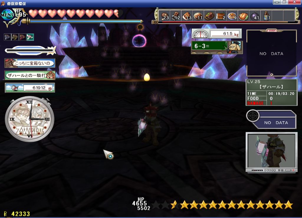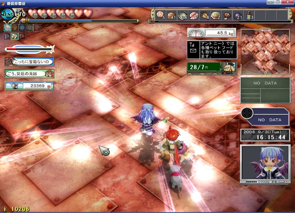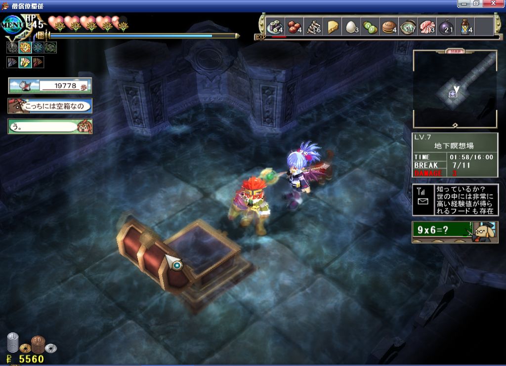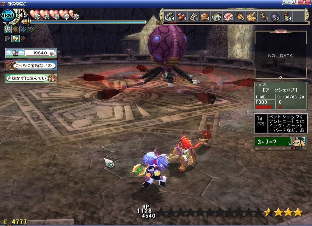 酒店里可以找大厨换食物,10个低级食物换一个高级食物,虽然10个低级食物的血比一个高级食物的多,但是经验值是比不上的,由于游戏升级是靠吃食物的,所以以后这里肯定是常来之处。不过不要全换完了,不然你打迷宫就没得吃了。