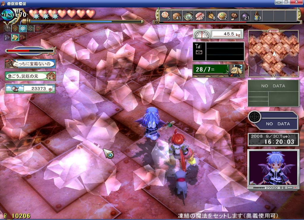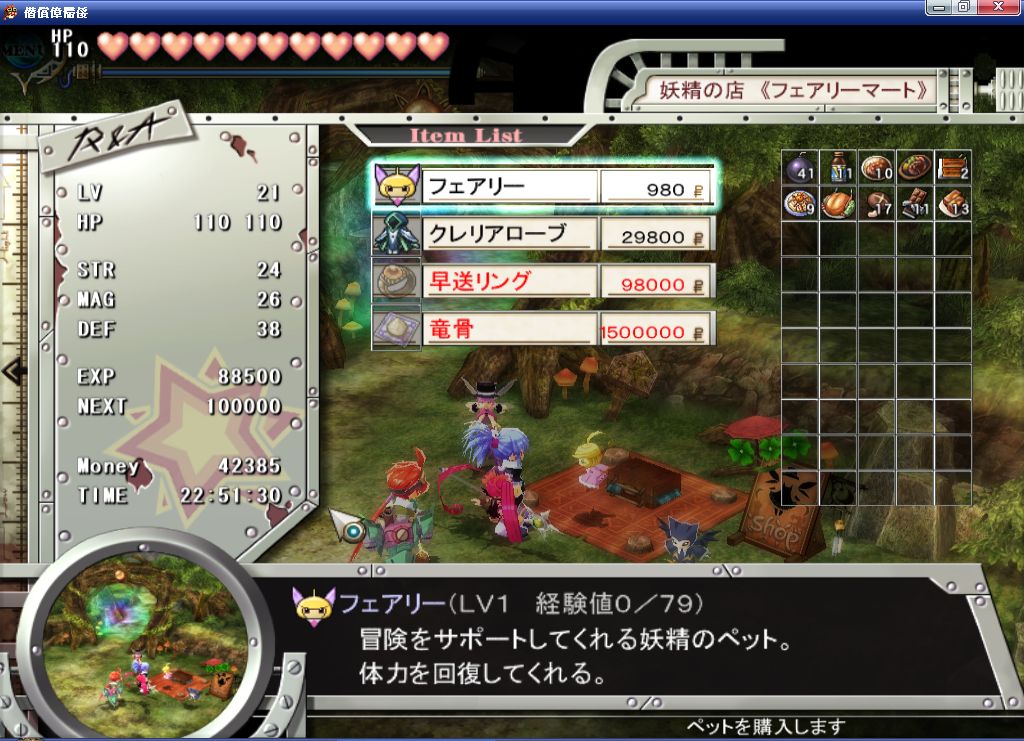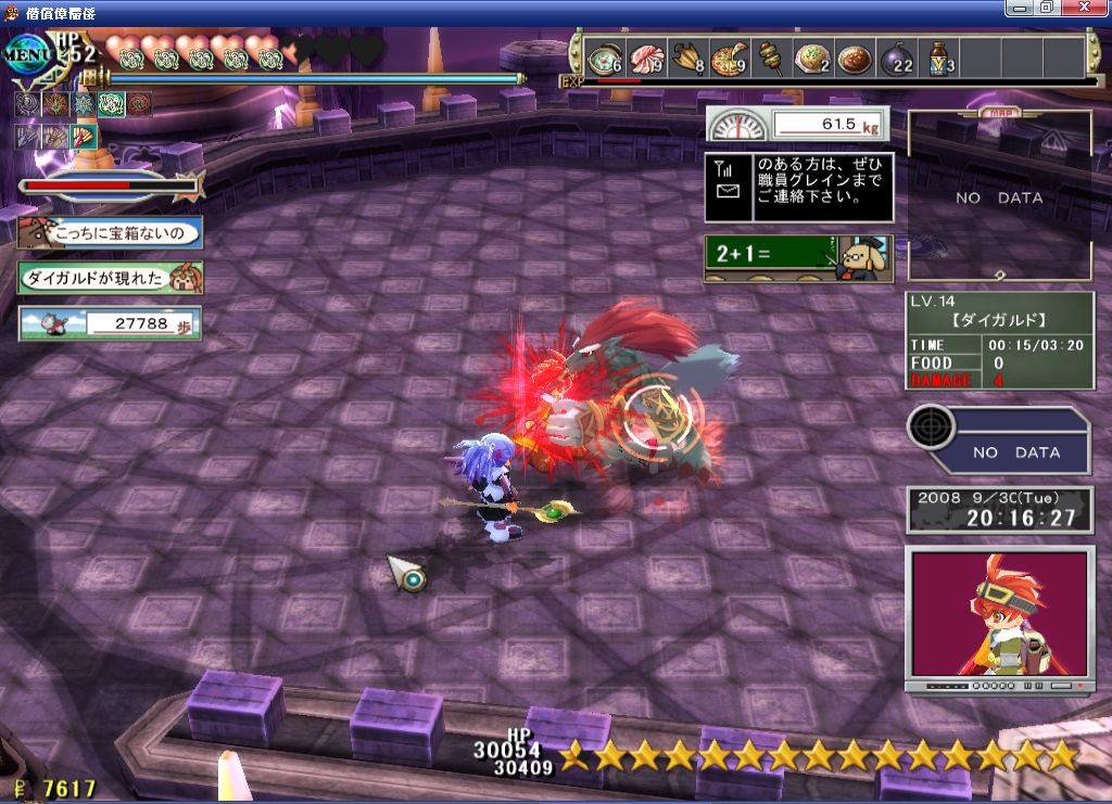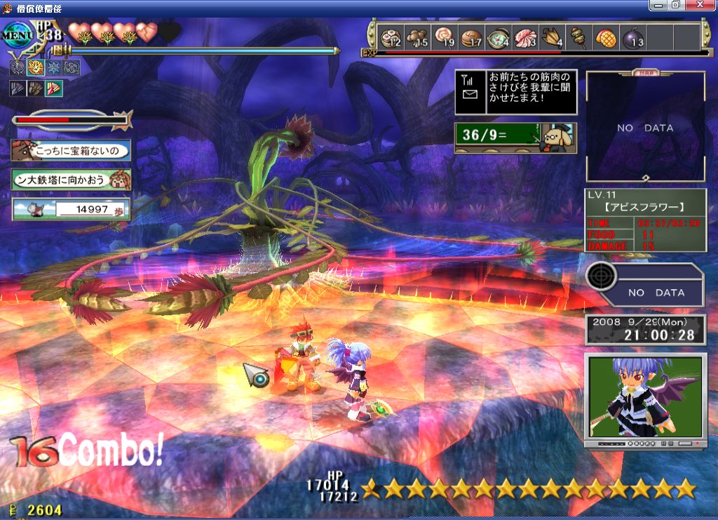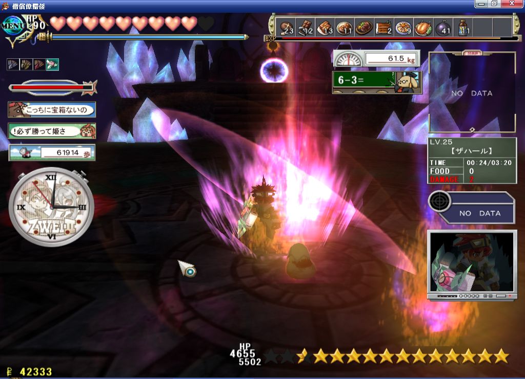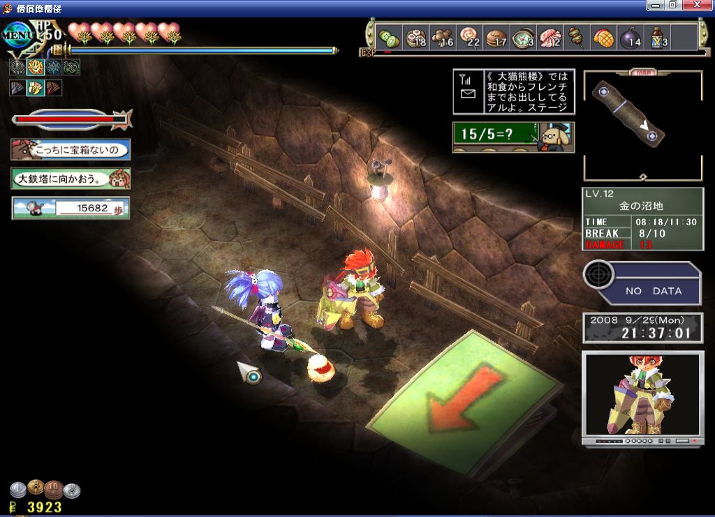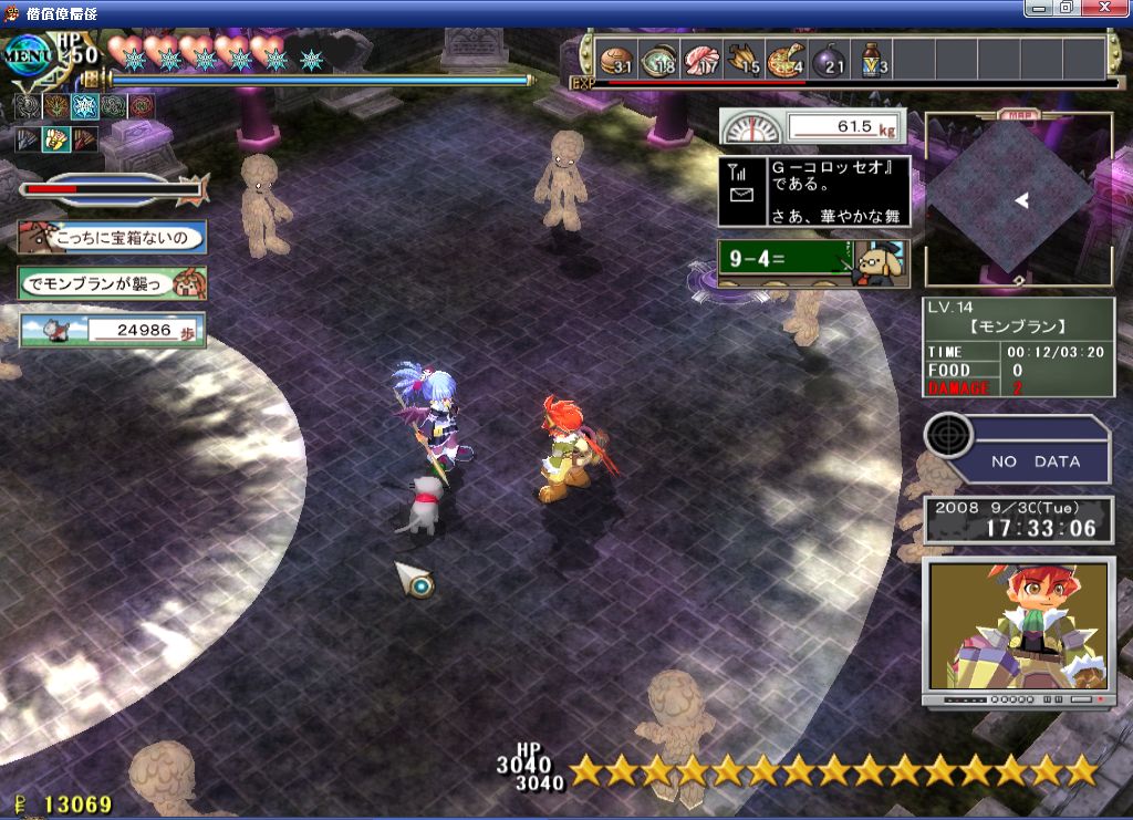 酒店里可以找大厨换食物,10个低级食物换一个高级食物,虽然10个低级食物的血比一个高级食物的多,但是经验值是比不上的,由于游戏升级是靠吃食物的,所以以后这里肯定是常来之处。不过不要全换完了,不然你打迷宫就没得吃了。