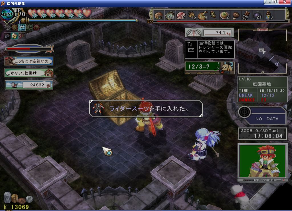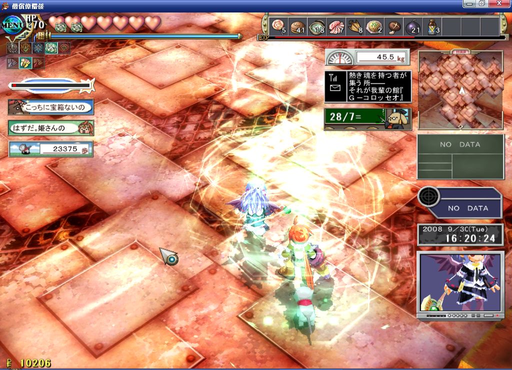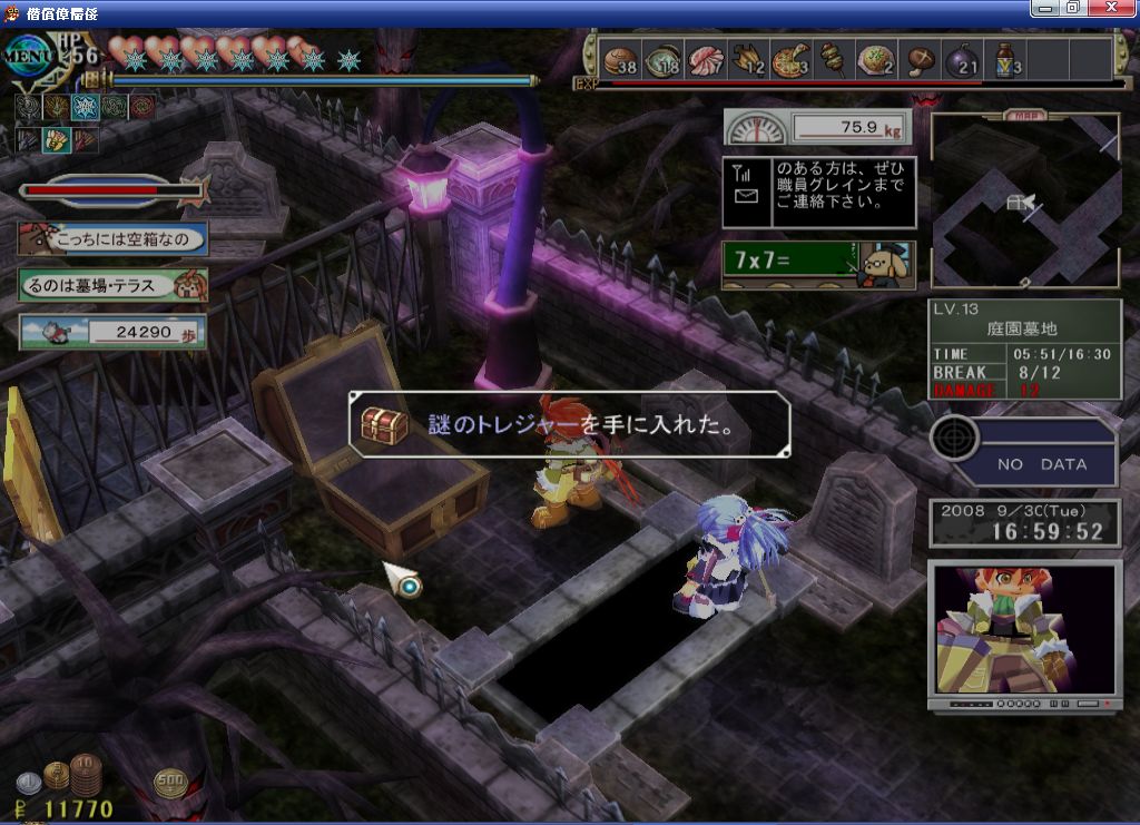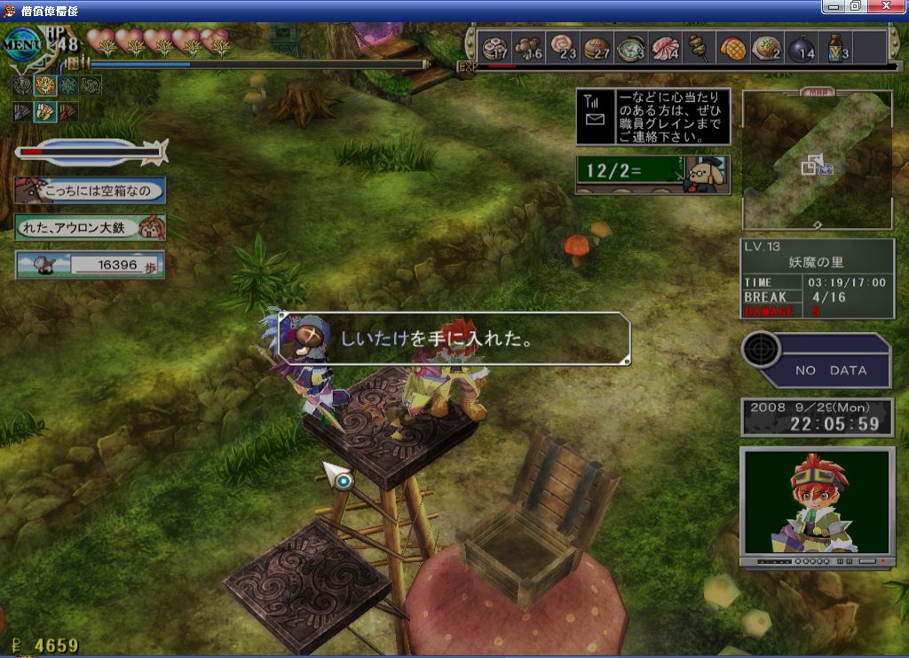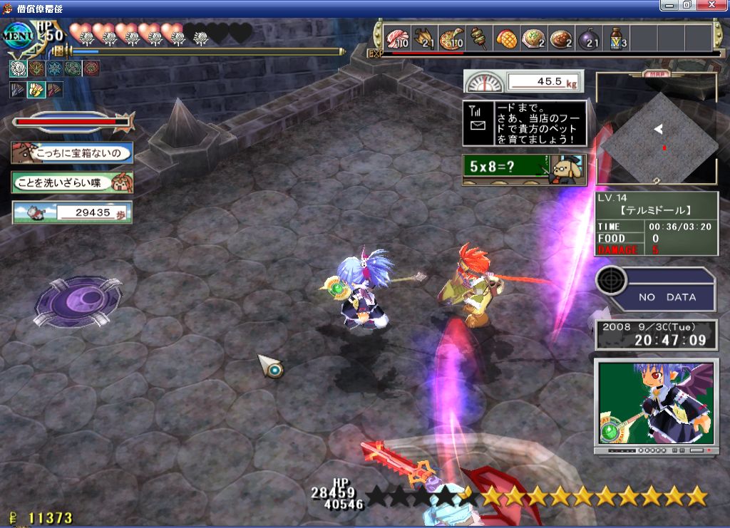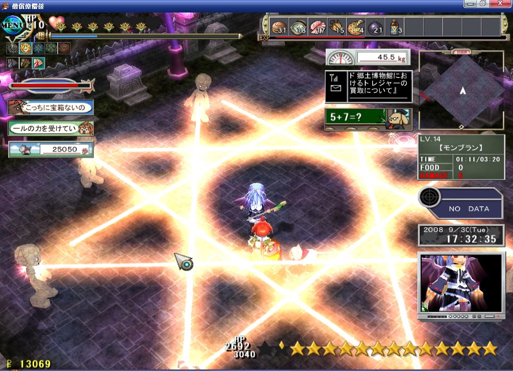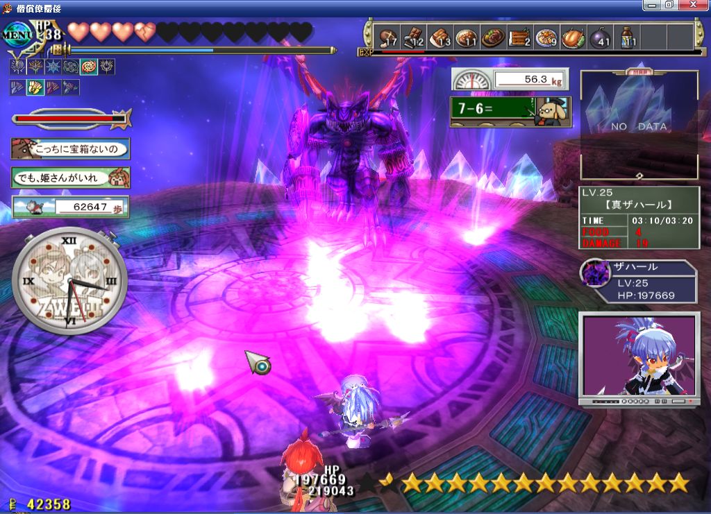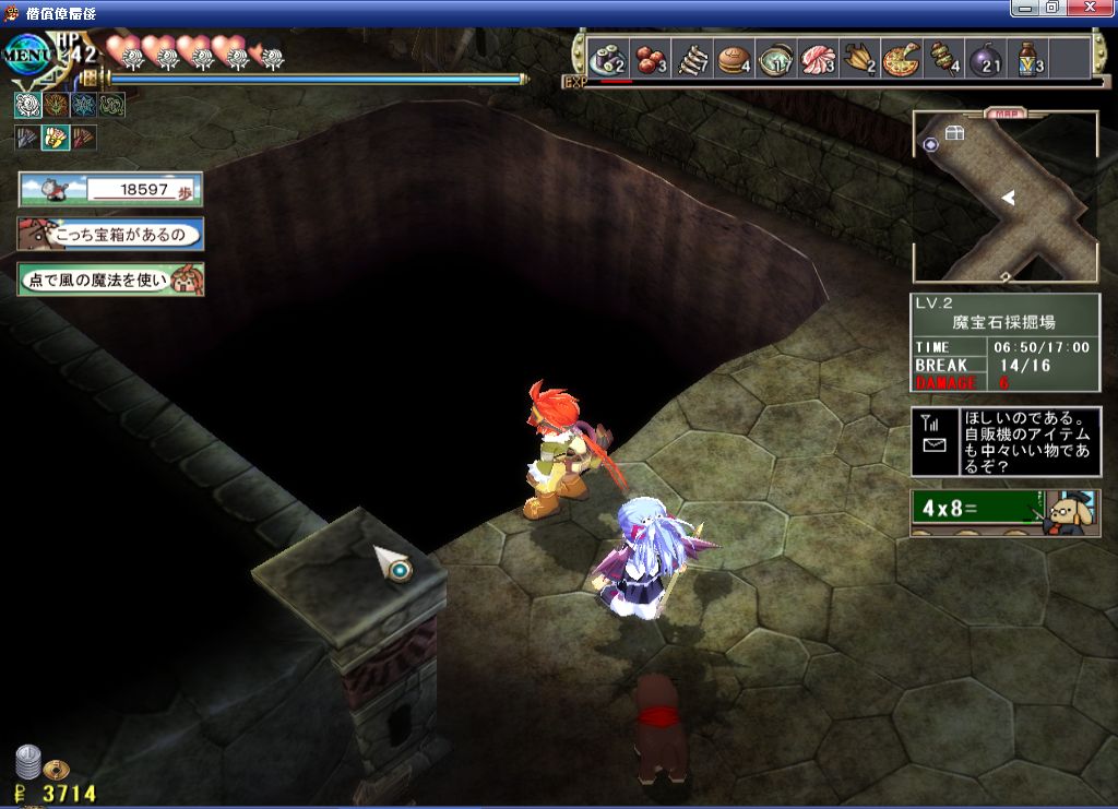 酒店里可以找大厨换食物,10个低级食物换一个高级食物,虽然10个低级食物的血比一个高级食物的多,但是经验值是比不上的,由于游戏升级是靠吃食物的,所以以后这里肯定是常来之处。不过不要全换完了,不然你打迷宫就没得吃了。