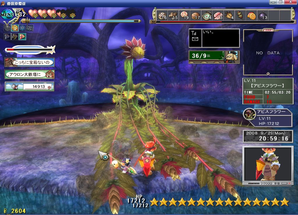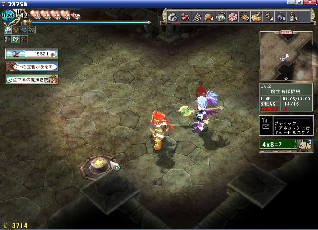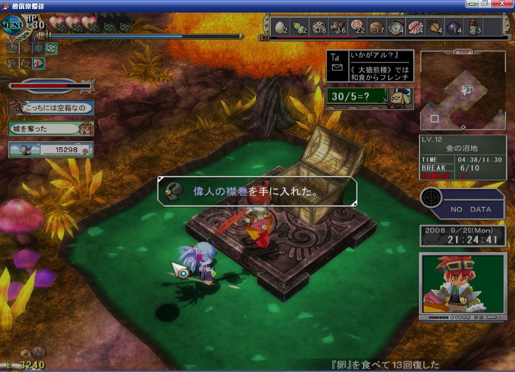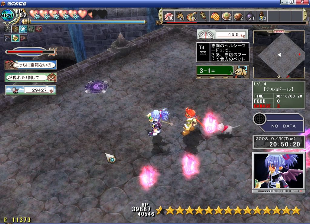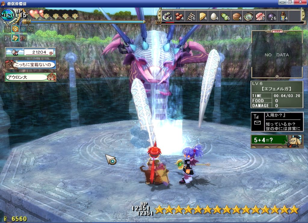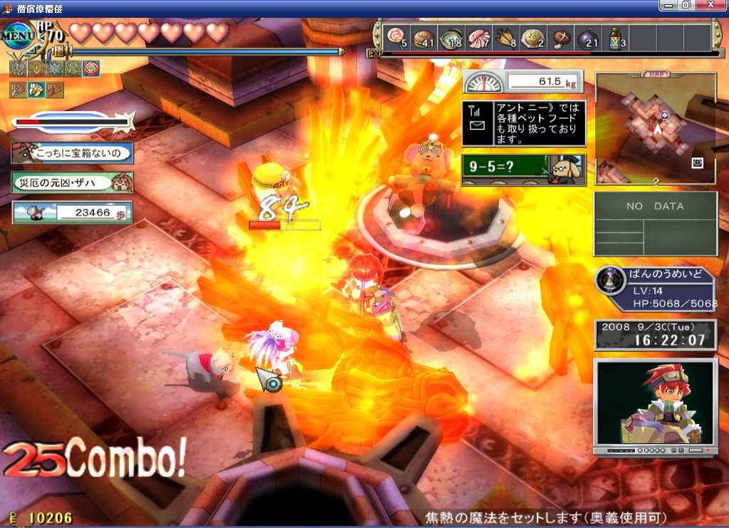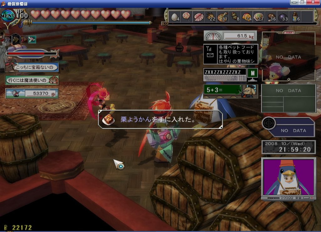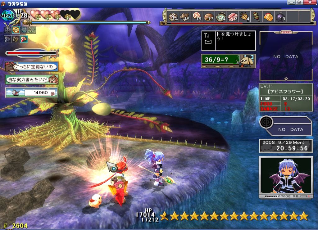 酒店里可以找大厨换食物,10个低级食物换一个高级食物,虽然10个低级食物的血比一个高级食物的多,但是经验值是比不上的,由于游戏升级是靠吃食物的,所以以后这里肯定是常来之处。不过不要全换完了,不然你打迷宫就没得吃了。