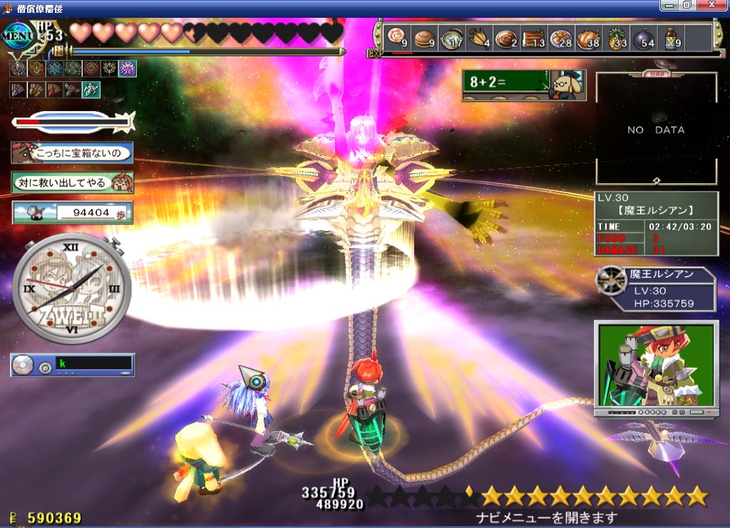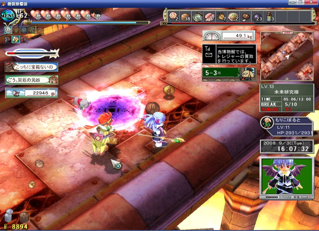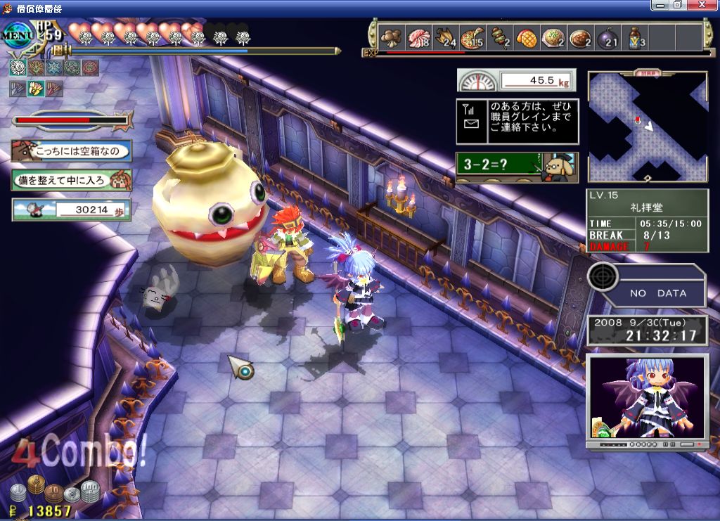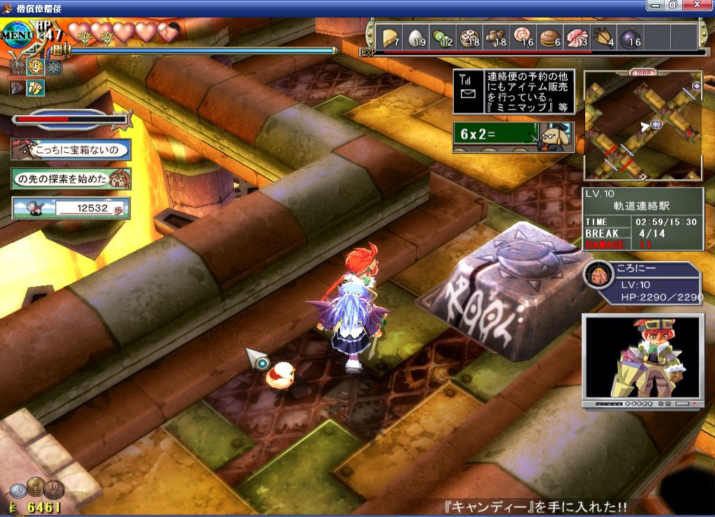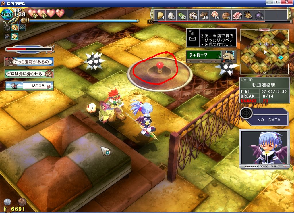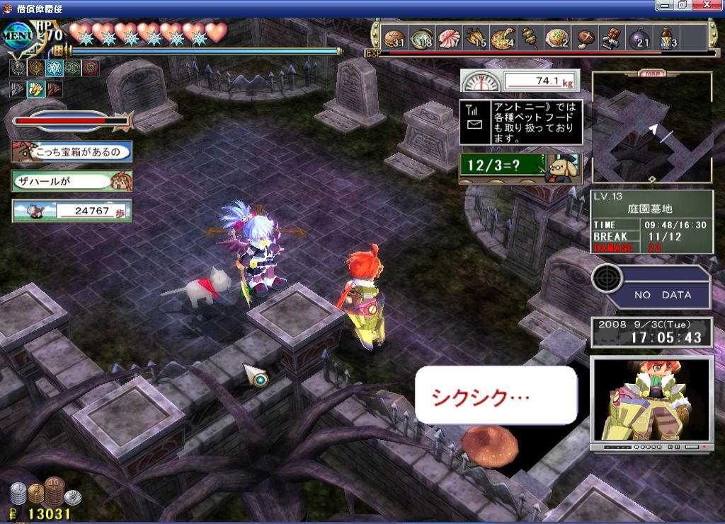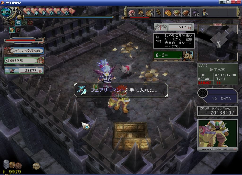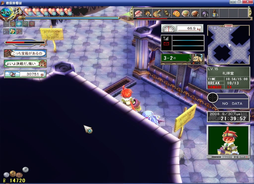 酒店里可以找大厨换食物,10个低级食物换一个高级食物,虽然10个低级食物的血比一个高级食物的多,但是经验值是比不上的,由于游戏升级是靠吃食物的,所以以后这里肯定是常来之处。不过不要全换完了,不然你打迷宫就没得吃了。