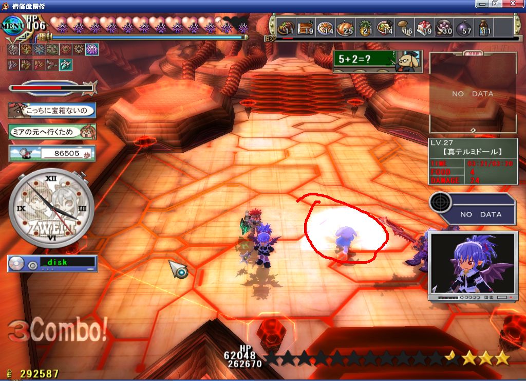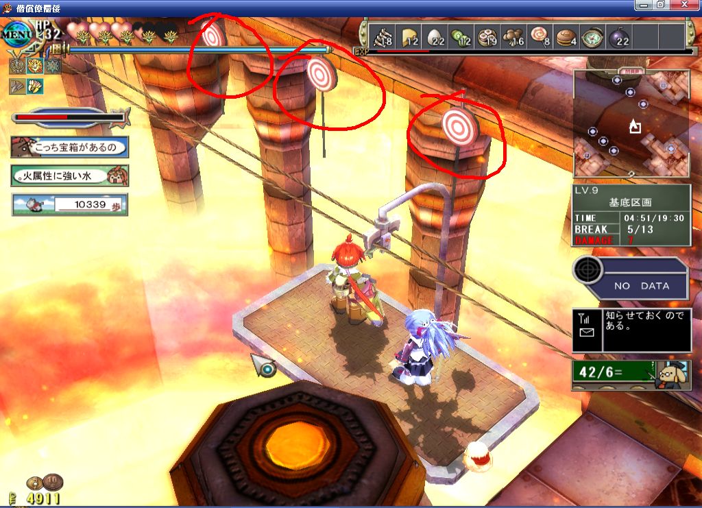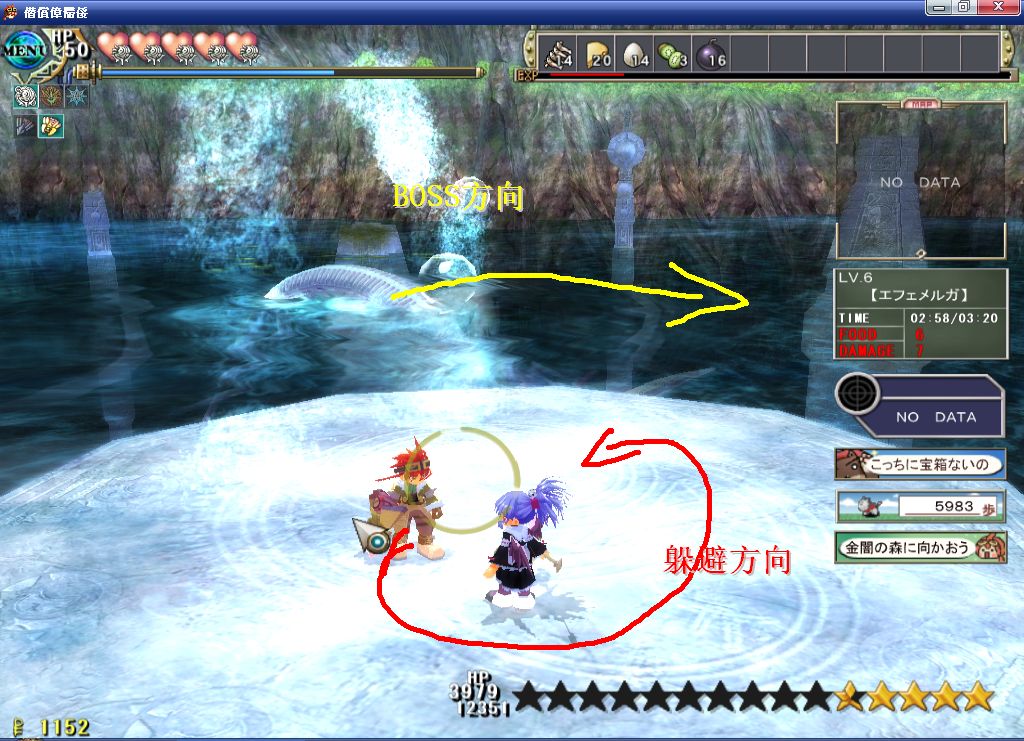 技能4:在你的位置不停地放炸弹,靠近并攻击BOSS,否则她会一直放下去。。。此时BOSS处于可攻击状态