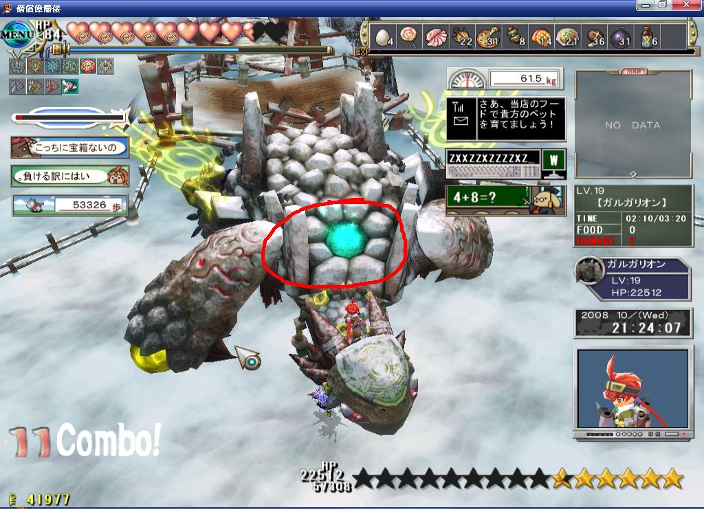 8号BOSS,覆面超人。发动冲刺攻击前有声音提示的,音箱没问题的朋友都听得见的,向他冲过来的方向反向跳跃躲避。如果不攻击他,他会做体操回血。攻击时机,只有在他做体操,和发动冲刺攻击前得一刹那,总之慢慢耗吧,如果你挑战等级在27级左右,那他打你下才10点血,多带点食物跟他磨。