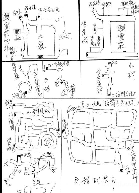| 沉家祠堂 | 阿飞回到祠堂等候林仙儿的消息。不久果见林仙儿前来告知李被囚禁之所在。 | 一定要存盘 ,在孙驼子店附近用剑威胁林麻子即可进入兴云庄 |