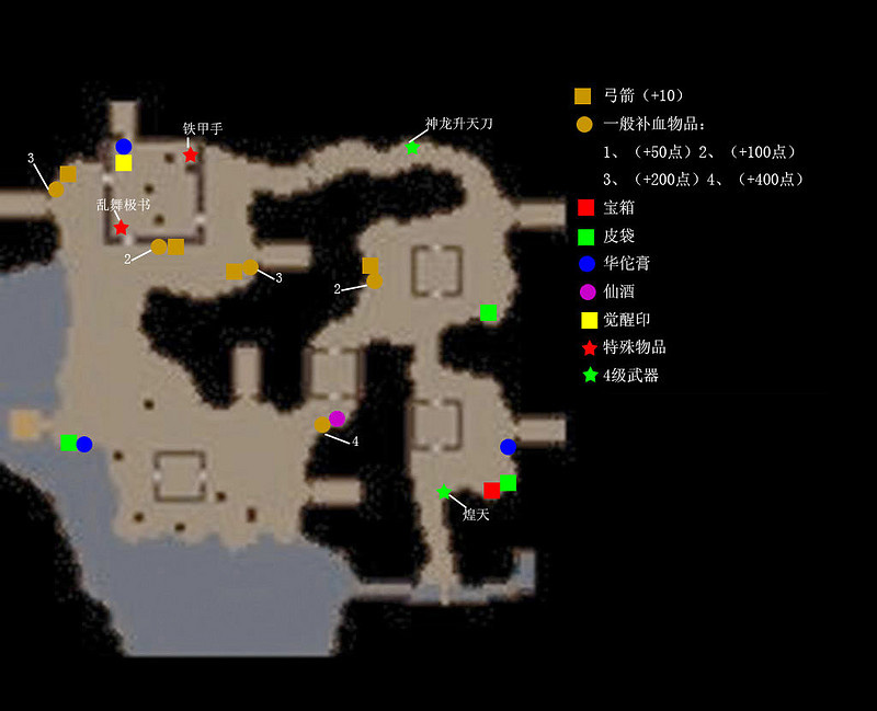 攻击、防御据点兵长一律掉+1剑、盾。补给据点兵长修罗以下难度掉华佗膏,修罗难度不掉任何东西。